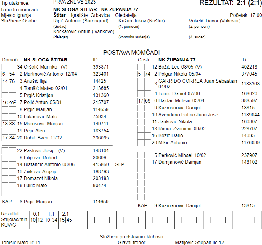 | 22 | 19.04.2023 17:00 | Štitar | NK Sloga Štitar – NK Županja 77 | 2:1 | |