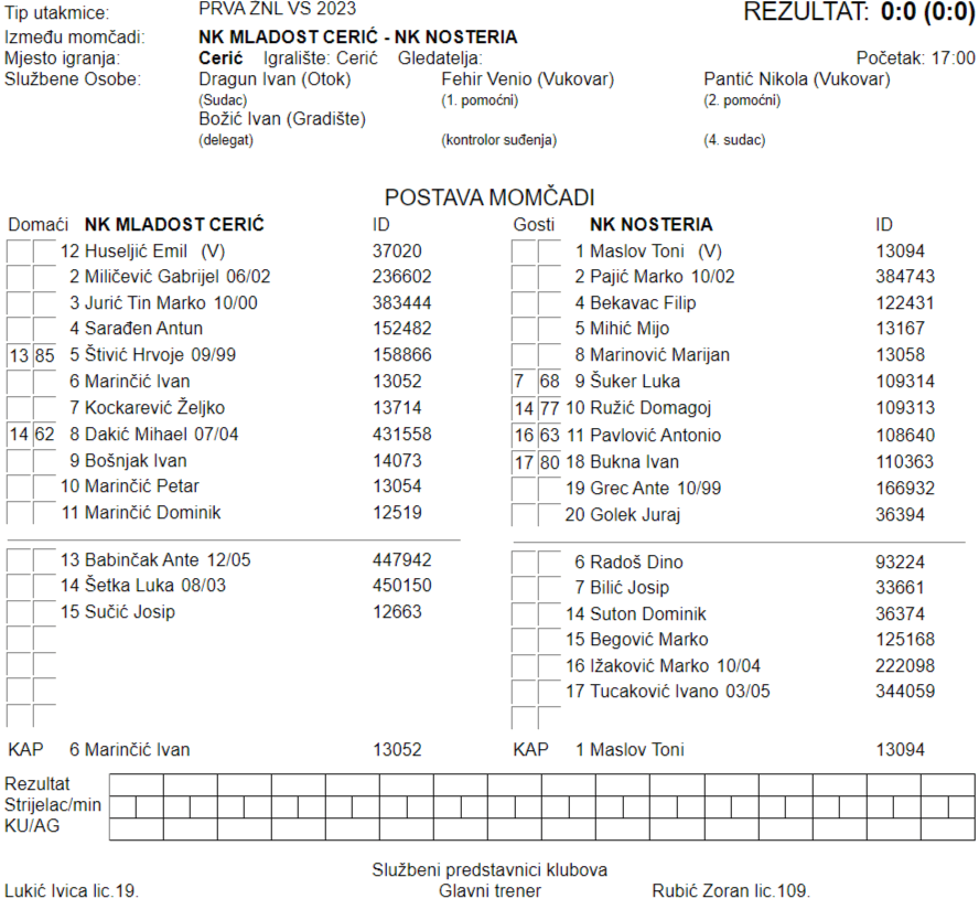 | 22 | 19.04.2023 17:00 | Cerić | NK Mladost Cerić – NK Nosteria | 0:0 | |