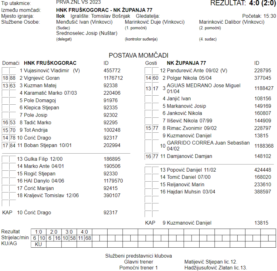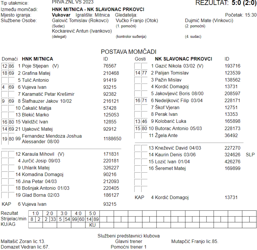 | 12.03.2023 15:30 | Vukovar | HNK Mitnica – NK Slavonac Prkovci | 5:0 | ||