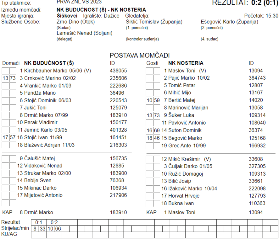 | 12.03.2023 15:30 | Šiškovci | NK Budućnost (Š) – NK Nosteria | 0:2 | ||