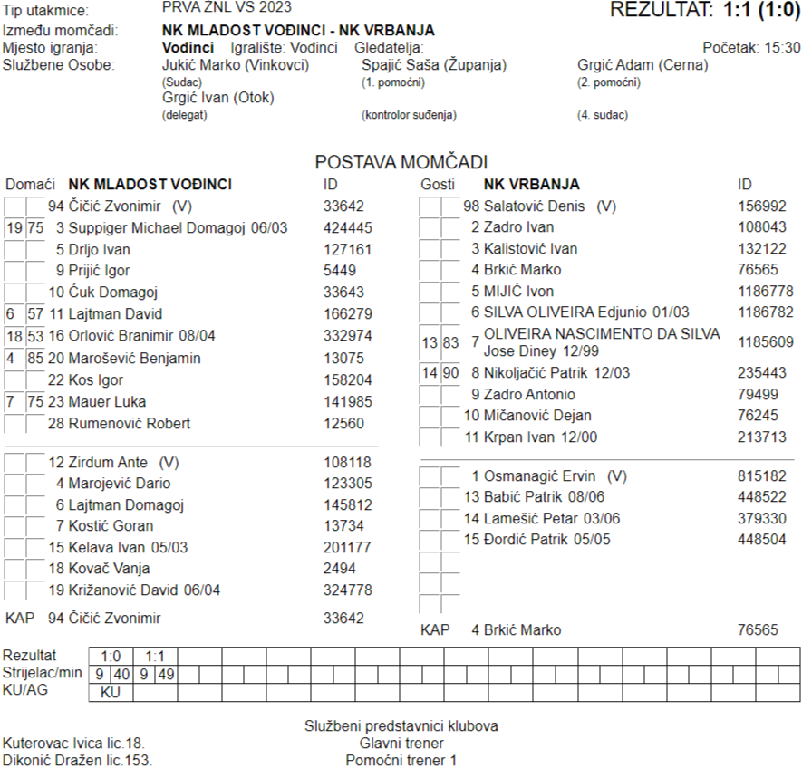 | 16 | 12.03.2023 15:30 | Vođinci | NK Mladost Vođinci – NK Vrbanja | 1:1 |