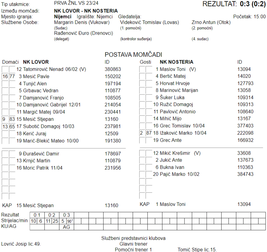 | 12 | 28.10.2023 15:00 | Nijemci | NK Lovor – NK Nosteria | 0:3 | |
