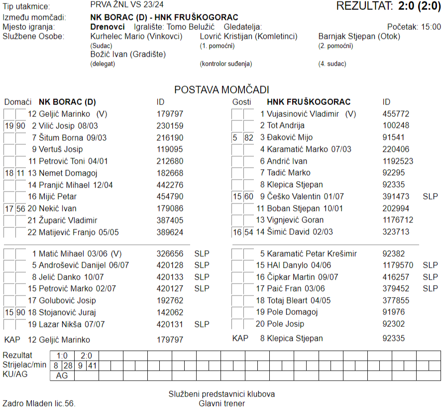 | 28.10.2023 15:00 | Drenovci | NK Borac (D) – HNK Fruškogorac | 2:0 | ||