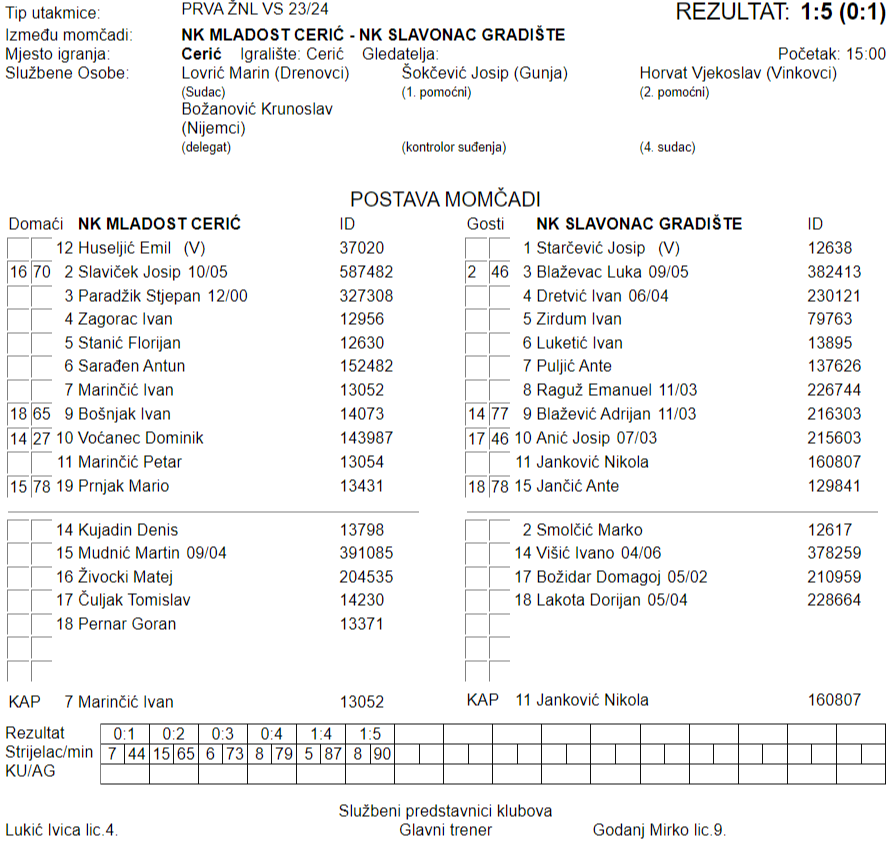 | 28.10.2023 15:00 | Cerić | NK Mladost Cerić – NK Slavonac Gradište | 1:5 | ||
