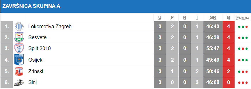 U skupini A probudila se Lokomotiva. Nakon startnog poraza od Sesveta, zagrebački sastav je danas ostvario dvije pobjede: Split 2010 17:13 i Osijek 20:14 te je ostao u igri za polufinale. Uz njih, ovaj dan bio je dobar i za mlade Splićanke, koje su nakon poraza od Lokomotive u posljednjem susretu dana pobijedile Sesvete i pokvarile im mogućnost stopostotnog učinka i sada do kraja zakomplicirale rasplet u toj skupini. Naime, osim Lokomotive, Sesveta i Splita, tu je i Osijek također s četiri boda. Kod Lokomotive, ovaj dan obilježila je Kala Kosovac s devet pogodaka (5+4). Splićanke vuče Sara Marendić koja ima dosta prvoligaškog iskustva među seniorkama i nalazi se među 50 najboljih strijelaca lige. U dva susreta danas, dala je 11 pogodaka.