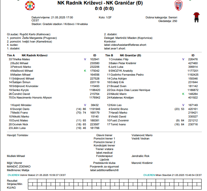 RADNIK KRIŽEVCI – GRANIČAR 0:0