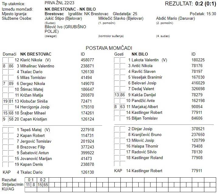BRESTOVAC – BILO 0:2