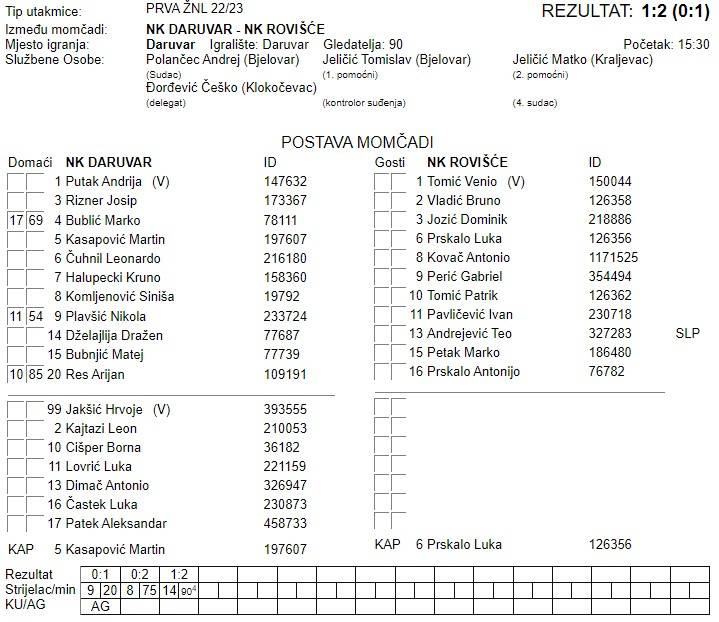 DARUVAR – ROVIŠĆE 1:2