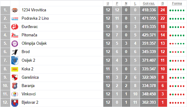 Baranja je na domaćem terenu ugostile rukometašice Đurđevca, koje su se pokazale spretnije u ovom susretu te su ostvarile pobjedu 29:36. Đurđevac je bio izraziti favorit u ovom susret, Baranja je pokazala da može stvoriti probleme svojim gošćama, no na kraju pobjeda ipak ide u Đurđevac. U nešto skraćenijem zapisniku kod Baranje, najviše su pokazale Ines Dolić i Jovana Vuković sa 7 pogodaka, a Đurđevac je predvodila Ivana Zirn sa vrhunskih 11 pogodaka. Ovim porazom Baranja se nalazi na 10.mjestu prvenstvene ljestvice sa 3 boda više od Vinkovaca.