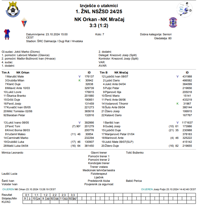 Sedmo kolo 1. ŽNL Split: Orkan i Mračaj remizirali u posljednjoj utakmici kola