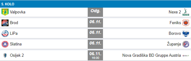 Sljedeće kolo nam donosi 4 utakmice, a utakmica Valpovke i Nexea je odgođena za neki drugi termin: