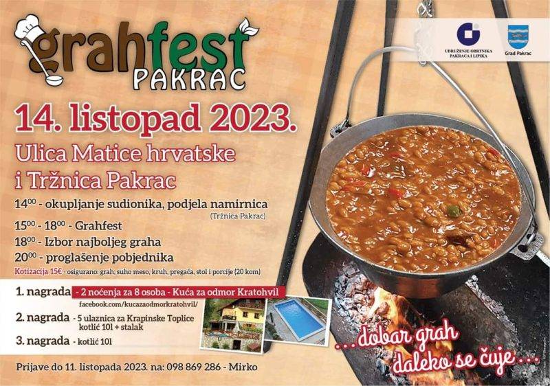 Sudjelovanje je prijavilo devedesetak ekipa kojima je organizator osigurao grah, suho meso, kruh, pregaču, stoli i 20 porcija. Pobjednik Grahfesta će osvojiti glavnu nagradu – dvodnevnim odmorom za 8 osoba u kući za odmor „Kratohvil“ u naselju Lukovdol u Gorskom kotaru, nagrada za 2. mjesto je 5 ulaznica u vodeni park u Krapinskim toplicama te 10-litarski kotlić sa stalkom, a nagrada za 3. mjesto je 10-litarski kotlić. Proglašenje pobjednika predviđeno je u 20 sati.