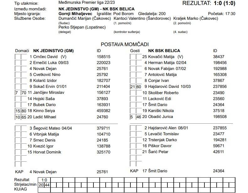NK JEDINSTVO (GM) – NK BSK BELICA 1:0