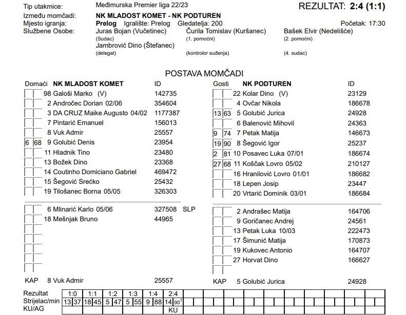 NK MLADOST KOMET – NK PODTUREN 2:4