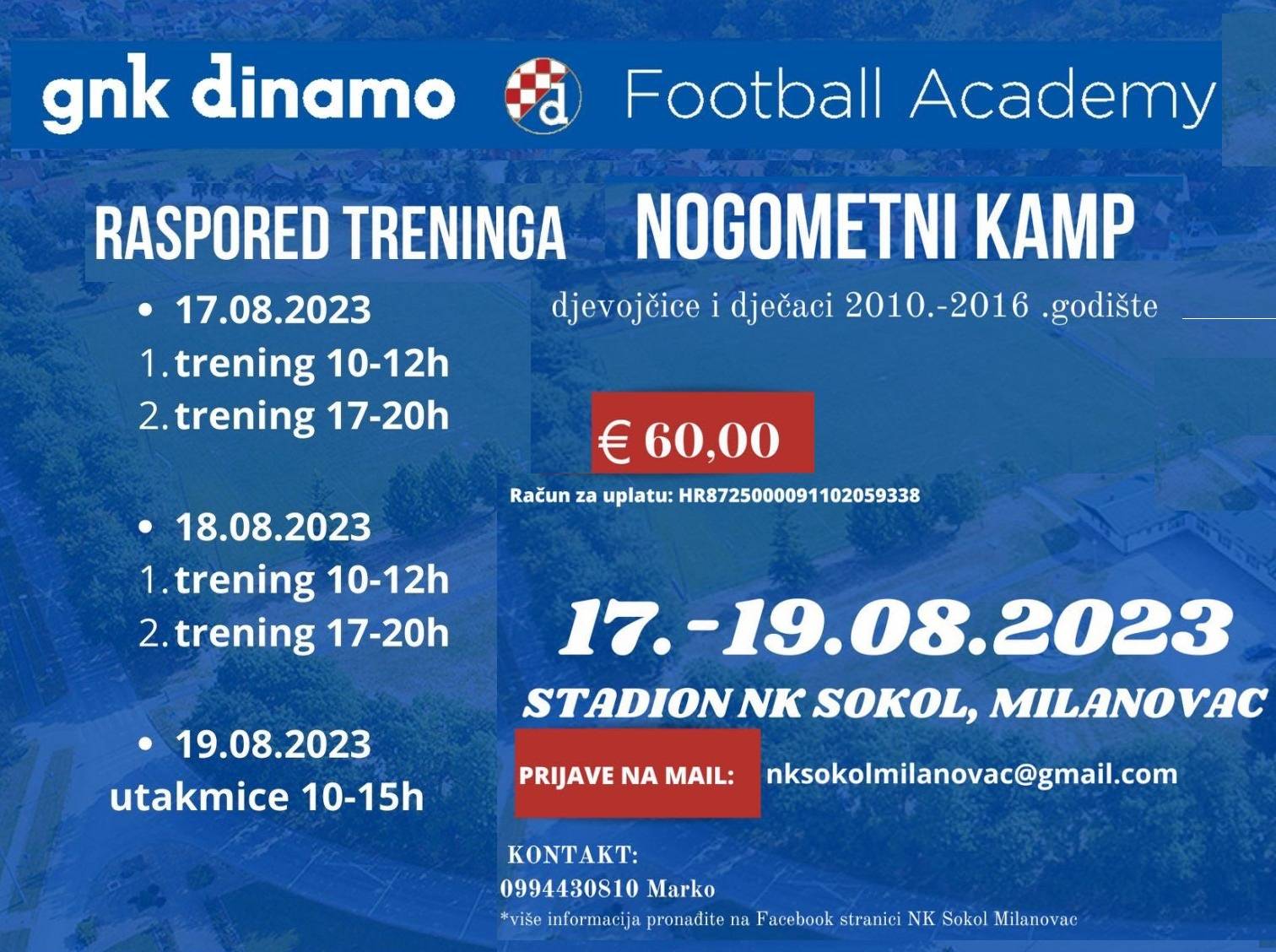 Ovog ljeta Nogometa akademija GNK Dinamo od 17. do 19. kolovoza održat će kamp za sve talentirane igrače s područja Virovitičko – podravske županije i šire. -“Očekujemo da će se oba suradnja dva kluba nastavit i idućih godina na obostrano zadovoljstvo.”- poručio je predsjednik Sokola Zvonko Kožnjak.