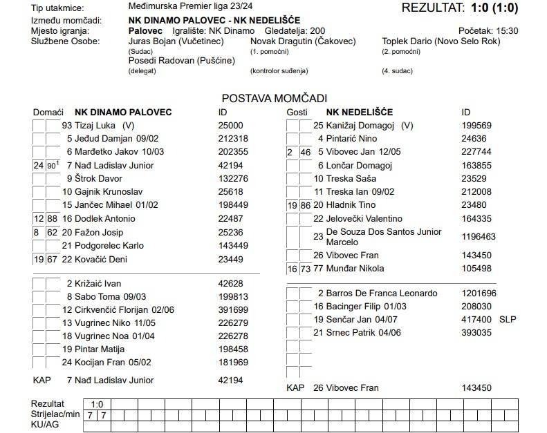 Još jedna utakmica u kojoj je pao samo jedan gol, čime je domaćin stigao do pobjede. Dinamo je golom Ladislava Juniora Nađa u sedmoj minuti nanio Nedelišću novi poraz. Ovom pobjedom je Dinamo privremeno zasjeo na drugo mjesto ljestvice, a hoće li se tamo zadržati – sve ovisi od sutrašnjeg dvoboja BSK-a i Međimurca.