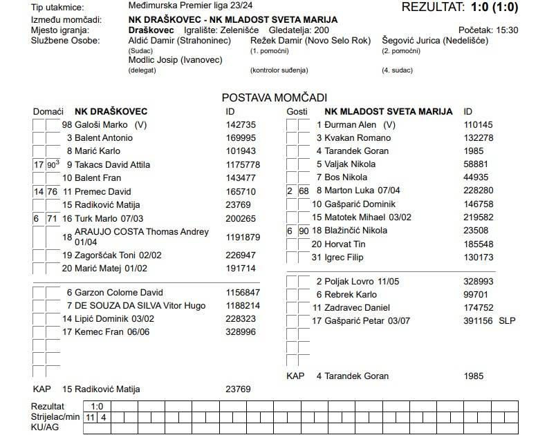 NK DRAŠKOVEC – NK MLADOST SVETA MARIJA 1:0