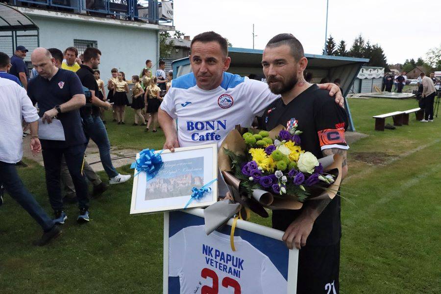 Uoči samog početka Danijel je prigodno darivan od veterana NK Papuk, od samog kluba, grada Orahovice, dok je od županije Virovitičko podravske Danijel primio Povelju zahvalnosti. Nakon toga su se prigodnim riječima okupljenima zahvalili župan Virovitičko podravski Igor Andrović te sam Danijel koji se zahvalio svima koji su došli i na trbinama i na terenu te se ispričao zbog nedolaska nekih od najavljenih bivših suigrača. Potom je priču usmjerio na malenog Petra za čije liječenje ide kompletan prihod od ovog događaja. S Petrom i njegovim roditeljima je prošetao do sredine igrališta i pobrao prave ovacije više od 2500 gledatelja!