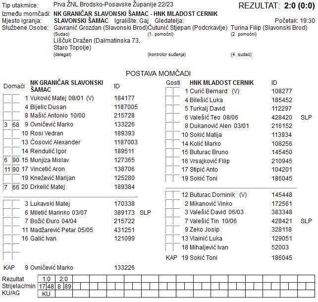 Graničar iz Slavonskog Šamca s učinkom od osam pobjeda, tri neriješena ishoda i devet poraza te uz dvije uzastopne pobjede ugostio je Mladost iz Cernika koja je u sedam prvenstvenih susreta osvojila skromna četiri boda što joj je uoči ovog dvoboja bilo dovoljno za dvanaesto mjesto poretka.