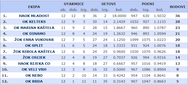 Ovog vikenda nastavila su se superligaška nadmetanja za odbojkašice i odbojkaše. Kod odbojkaša nije bilo prevelikih iznenađenja te su svi favoriti s pobjedama otvorili proljetni dio sezone. Superligašice su pak imale nekoliko zanimljivih susreta, izdvajamo pobjedu Neba protiv Kelteksa.