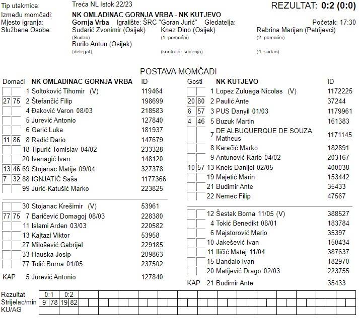 Malo pomalo Kutjevo je stiglo do četvrte pozicije, a sjetit ćemo se užasnog ulaska u sezonu kada su tavorili na dnu i dugo čekali na prvu pobjedu. Iz Vrbe se vraćaju s tri boda koja su osvojena u samoj završnici golovima Karla Antunovića i Marina Majetića. Omladinac je na začelju, a razlog za to je kronično neučinkovit napad koji je u čitavoj sezoni postigao samo 19 golova. Defenziva funkcionira sasvim pristojno s obzirom na borbu za ostanak, no bez golova se teško može pobjeđivati.