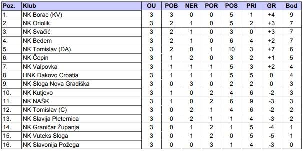 Na vrhu ljestvice s maksimalnim učinkom je usamljen Borac koji je u trećem kolu upisao domaće bodove u derbiju kola protiv Valpovke. Osim što nižu dobre igre i dobre rezultate, u Kneževim Vinogradima daju ozbiljnu minutažu svojim mladićima i grade temelje budućnosti kluba, jedno kolo iskoči Varga, drugo Balatinac, treće Pejić… Slatke brige za Sašu Balatinca. Prošle sezone je Borac imao sjajan start ali se on može dijelom pripisati tome što su bili novi u ligi, što su ih protivnici negdje i podcijenili, ovaj put to nikako nije slučajno.