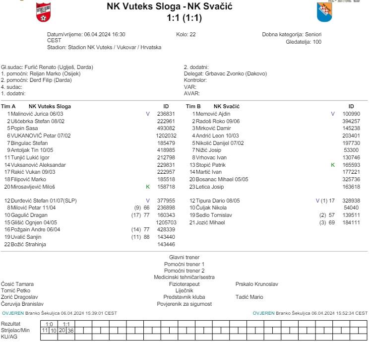 – Jako dobro smo ušli u utakmicu i za to smo nagrađeni golom, ali nas je isto tako taj gol nekako uspavao, pa su gosti preuzeli blagu inicijativu, iako su samo posjedovali loptu, bez izglednih šansi za gol. Drugo poluvrijeme opet smo ušli dobro i mislim da smo bili bolji, stvorili smo 3-4 jako dobre šanse, ali nažalost nismo ih iskoristili. Protivnik je možda više držao loptu u nogama, ali nije bio opasan po naš gol, tako da mislim da je 1:1 realan ishod utakmice. Okrećemo se gostovanju u Đakovo i nadamo se bodovima, želimo da ovaj naš niz utakmica bez poraza što duže traje. Pohvale za sudačku trojku – komentar je Vlade Karakaša, trenera Vuteksa.