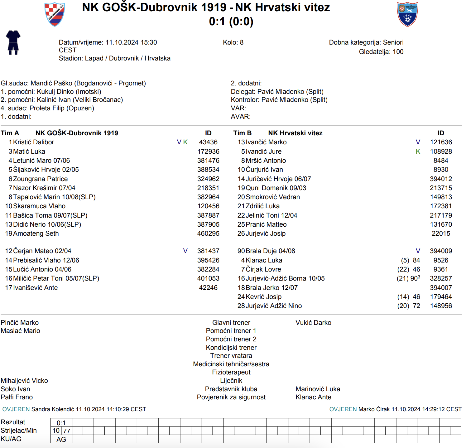 GOŠK-DUBROVNIK 1919 – HRVATSKI VITEZ(P) – 0:1