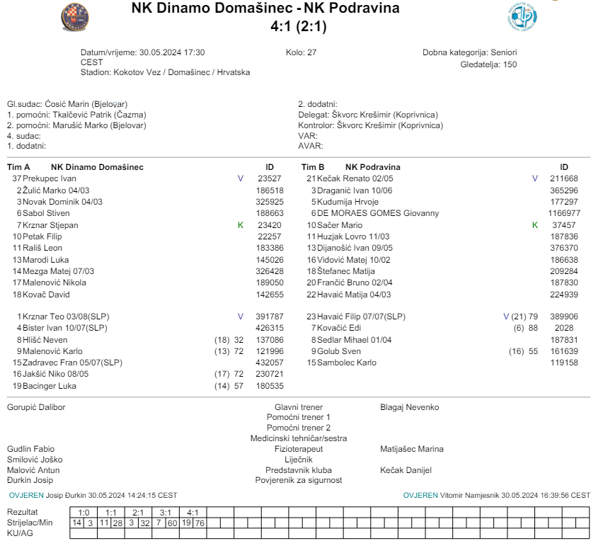 | 27 | 30.05.2024 17:30 | Domašinec | NK Dinamo Domašinec – NK Podravina | 4:1 | |