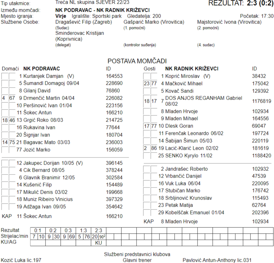 | 25 | 20.05.2023 17:30 | Virje | NK Podravac – NK Radnik Križevci | 2:3 | |