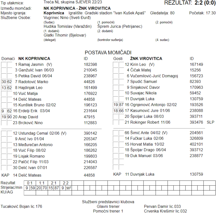 | 25 | 20.05.2023 17:30 | Koprivnica | NK Koprivnica – NK Virovitica | 2:2 |