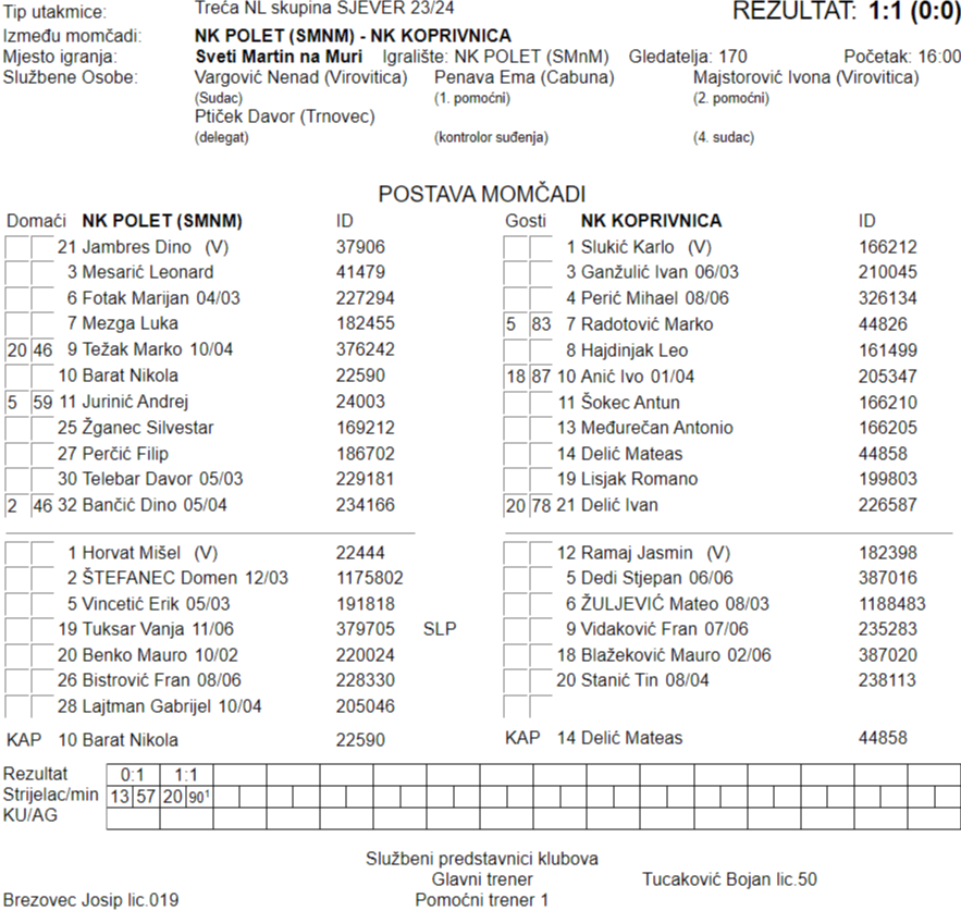 07.10.2023 16:00 | Sveti Martin na Muri | NK Polet (SMnM) – NK Koprivnica | 1:1 | ||