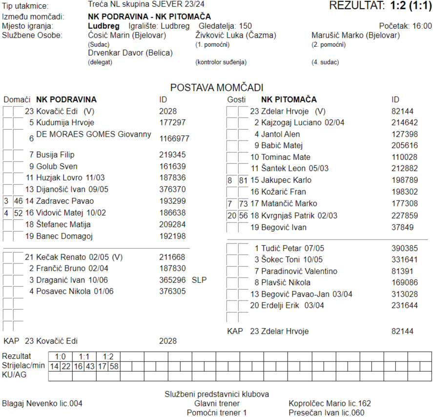 07.10.2023 16:00 | Ludbreg | NK Podravina – NK Pitomača | 1:2 | ||