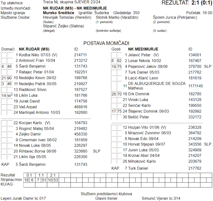 07.10.2023 16:00 | Mursko Središće | NK Rudar (MS) – NK Međimurje | 2:1 | ||