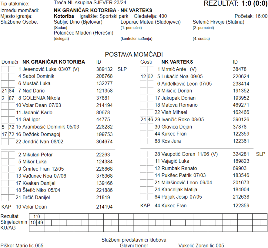 07.10.2023 16:00 | Kotoriba | NK Graničar Kotoriba – NK Varteks | 1:0 |