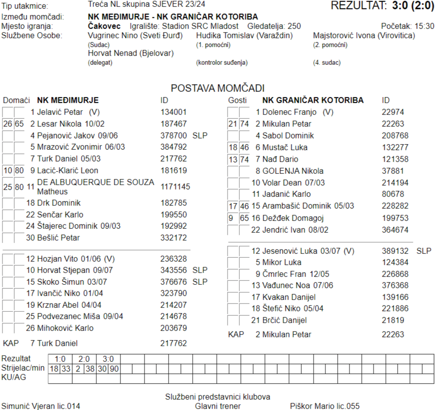 14.10.2023 15:30 | Čakovec | NK Međimurje – NK Graničar Kotoriba | 3:0 | ||