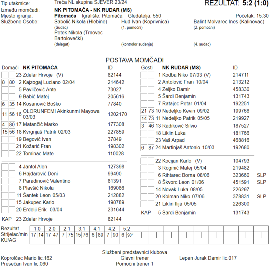 9 | 14.10.2023 15:30 | Pitomača | NK Pitomača – NK Rudar (MS) | 5:2 | |