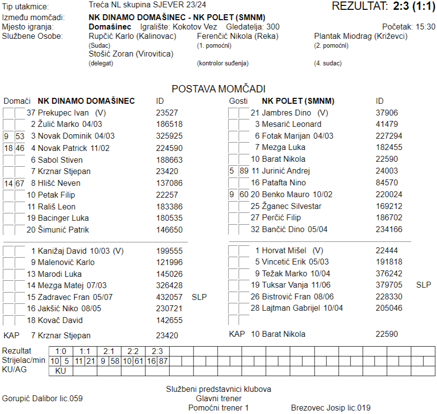 14.10.2023 15:30 | Domašinec | NK Dinamo Domašinec – NK Polet (SMnM) | 2:3 |