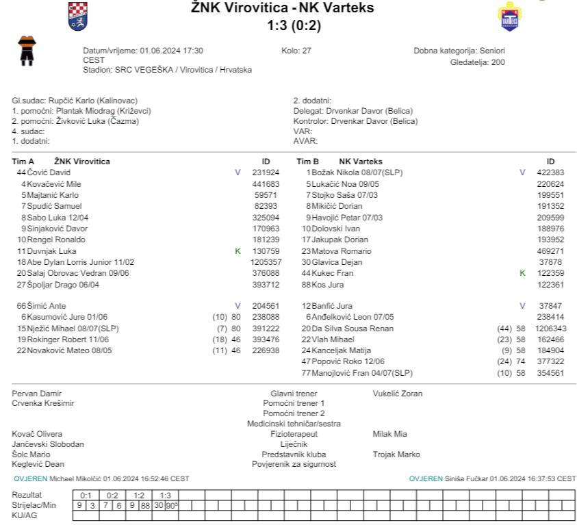 | 27 | 01.06.2024 17:30 | Virovitica | ŽNK Virovitica – NK Varteks | 1:3 | |