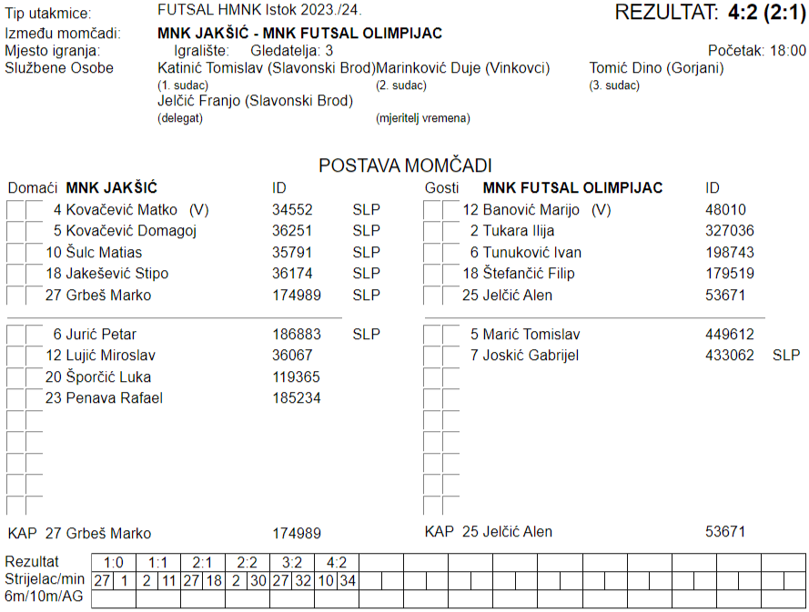 09.10.2023 18:00 | MNK Jakšić – MNK Futsal Olimpijac | 4:2 | |||