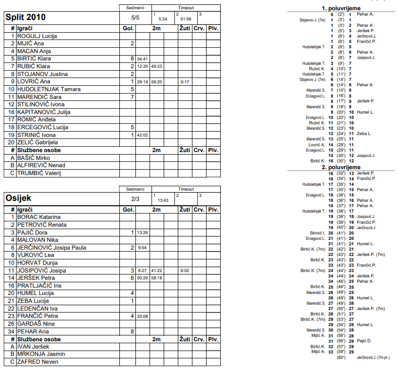 Ana Pehar je predvodila Osijek u ovom susretu sa 8 pogodaka, pratila ju je Petra Jeršek sa 6, no to nije bilo dovoljno za pobjedu Osijeka, a vrijedi napomenuti da su Osječanke igrale bez ponajbolje igračice Dore Lacković. Domaće igračice su bile predvođene Klarom Birtić koja je postigla 8 pogodaka.