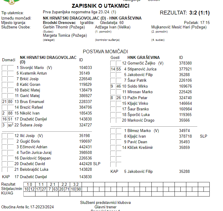 NK HRVATSKI DRAGOVOLJAC (D) – HNK GRAŠEVINA 3:2