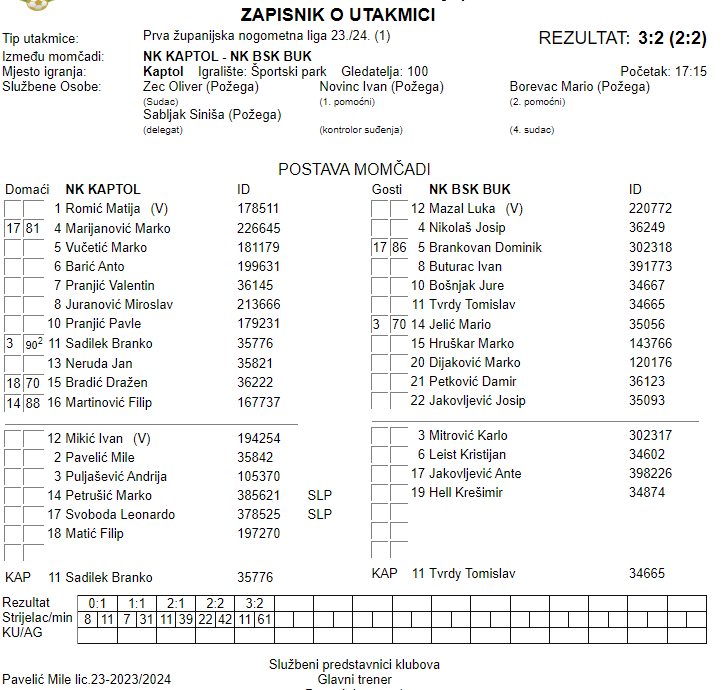 NK KAPTOL – NK BSK BUK 3:2