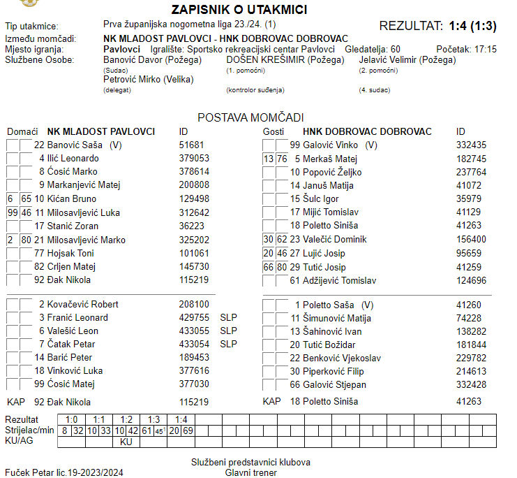 NK MLADOST PAVLOVCI – HNK DOBROVAC 1:4