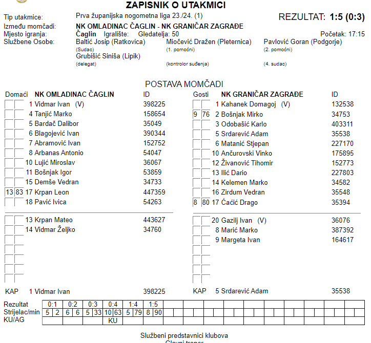 NK OMLADINAC ČAGLIN – NK GRANIČAR ZAGRAĐE 1:5