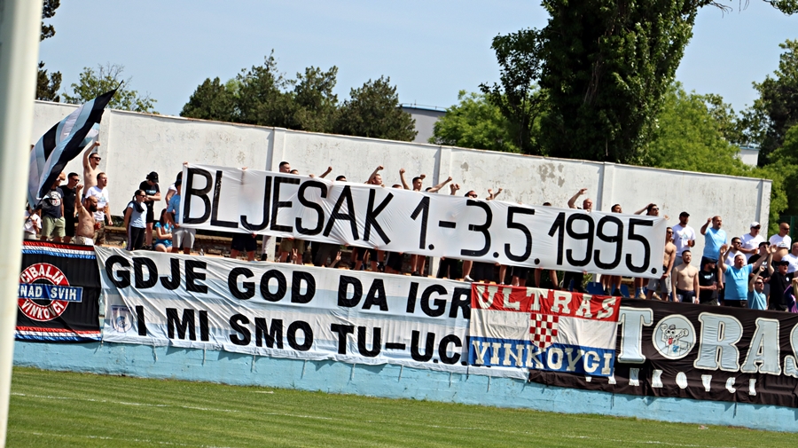U subotu je u Vukovaru odigran županijski derbi, lider Prve NL je s 4:2 bio bolji od najbližeg susjeda, a zaista lijep ugođaj na stadionu u Borovu začinili su Ultrasi koji su svih 90 minuta glasno bodrili svoje mezimce. Stigli su navijači Nebeskoplavih poslati i dvije snažen poruke, jednu posvećenu veličanstvenoj pobjedi Hrvatske vojske u operaciji Bljesak, drugu posvećenu temi koja ne silazi s vrha top liste najzanimljivijih sportskih tema u Slavoniji.
