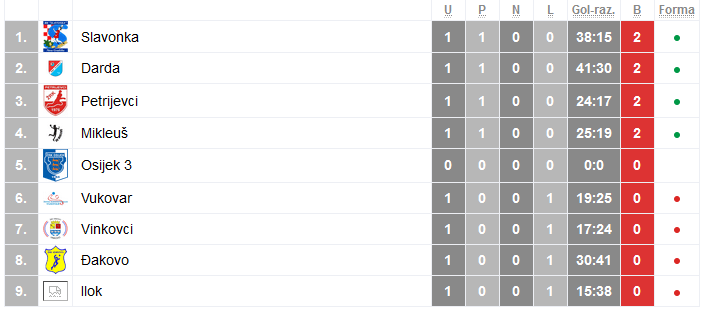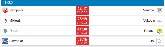 U Novoj Gradiški u subotu prvenstvo su otvorile svojim susretom domaća Slavonka i gošće iz Iloka. Domaće rukometašice slavile su na kraju sa visokih 38:15, a kod njih najefikasnije su bile sa po osam pogodaka Sanja Didović i Matea Sertić, dok je gošće iz Iloka predvodila s pet pogodaka Marija Faletar.